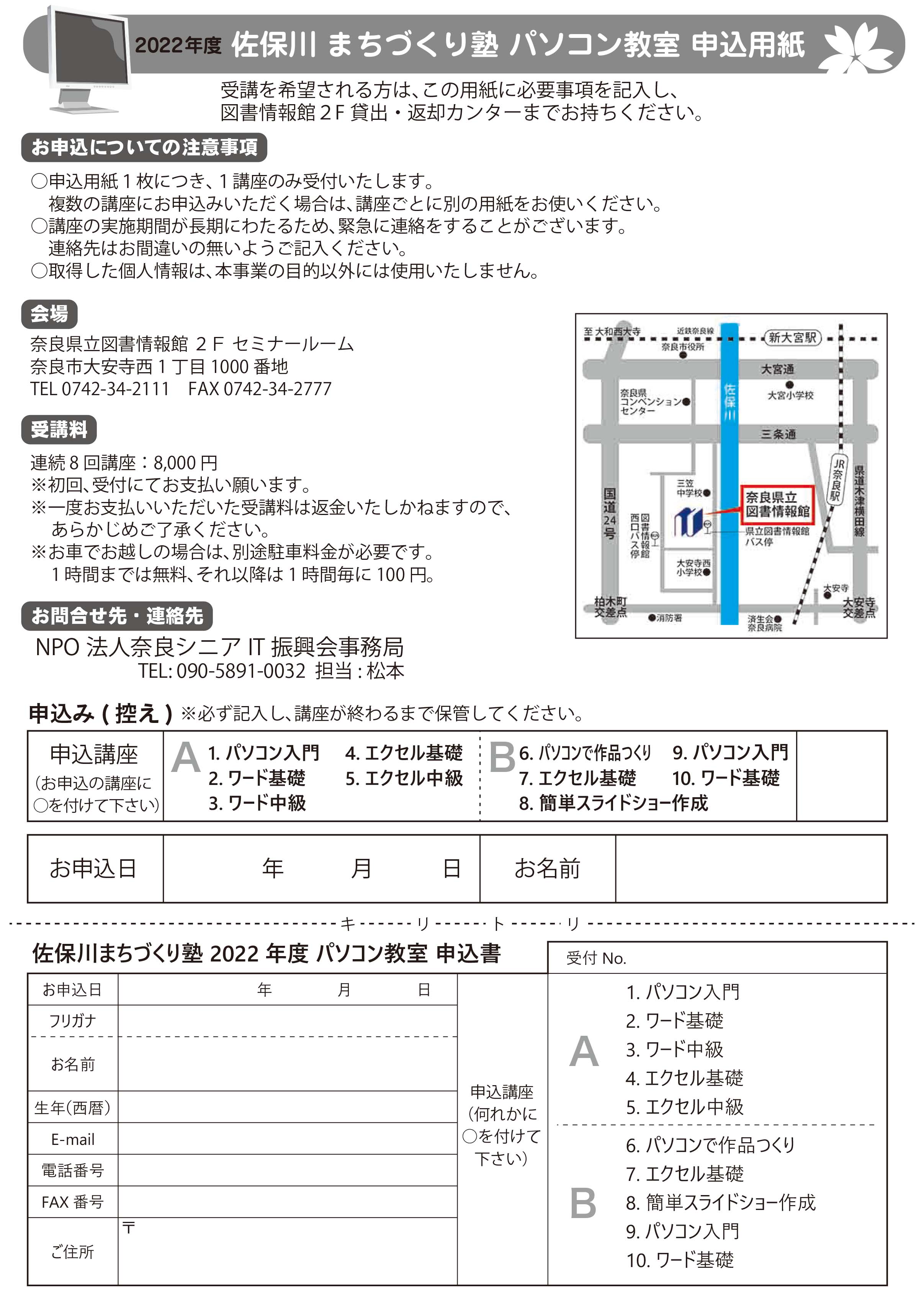 佐保川まちづくり塾パソコン教室2022年度ちらし裏