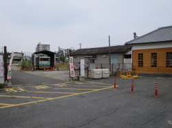 | JR京終駅 「起点? 終点?」 いかにも手作り感のある車止めを発見しました 撮影:大野勝彦氏 |