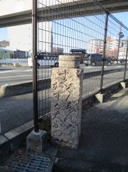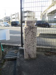 | (015-1)番外 地蔵橋跡 吉城川が暗渠になる前「地蔵橋」があった。後藤町付近 東の石柱の南面:地蔵橋 西の石柱の南面:吉城川 |