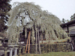 氷の神様を祀る「氷室神社」奈良でも最も早く開花し「奈良の一番桜」とよばれるシダレ桜。 写真:河本 |